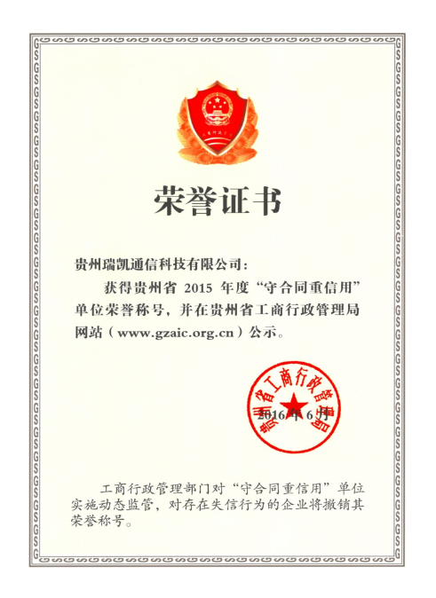 贵州瑞凯通信科技有限公司是一家具有独立法人资格的有限责任公司,经国家相关部门审定为“通信信息网络系统乙级”、“ 电力设施安装企业承装类三级”和“输变电工程专业承包叁级”企业、“南方电网建设工程备案企业”、取得了省住建厅颁发的“安全生产许可证”、并通过了ISO9001:2008国际质量管理体系、ISO14001:2004环境管理体系、OHSAS18001:2007职业健康安全管理体系资格认证。