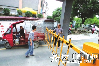 邱从喜(右一)对进出小区车辆进行登记核查。 |
