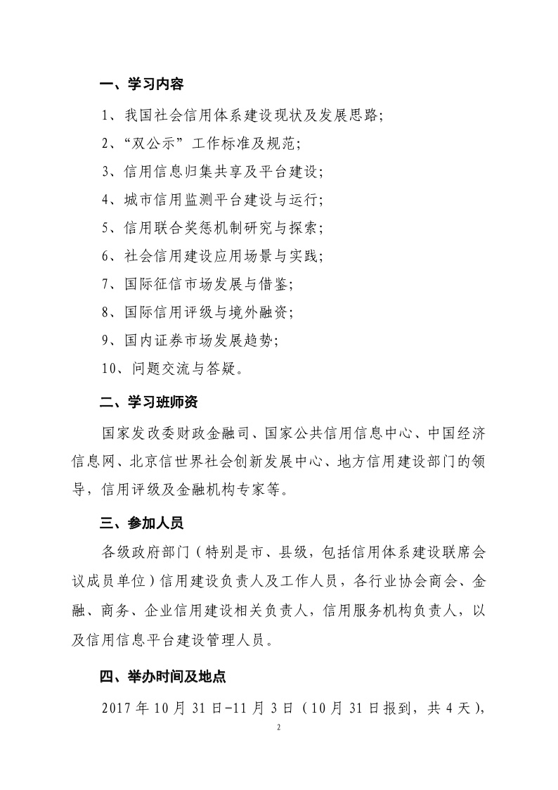 关于举办社会信用建设学习班的通知