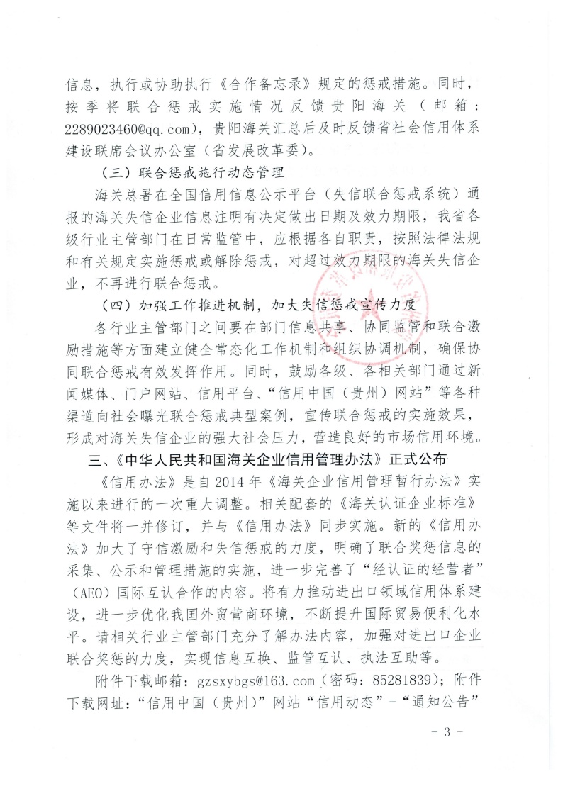 关于进一步加强对海关高级认证企业实施联合激励和海关失信企业实施联合惩戒的通知