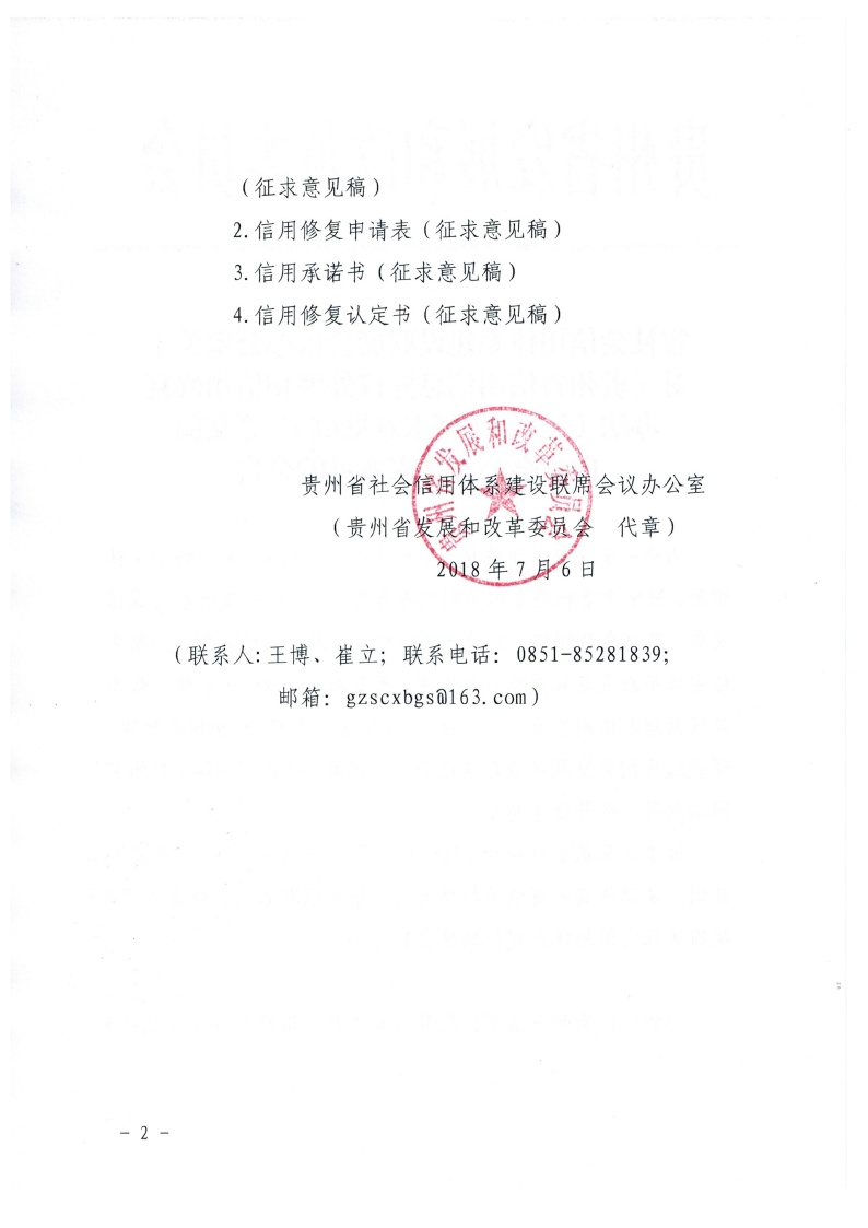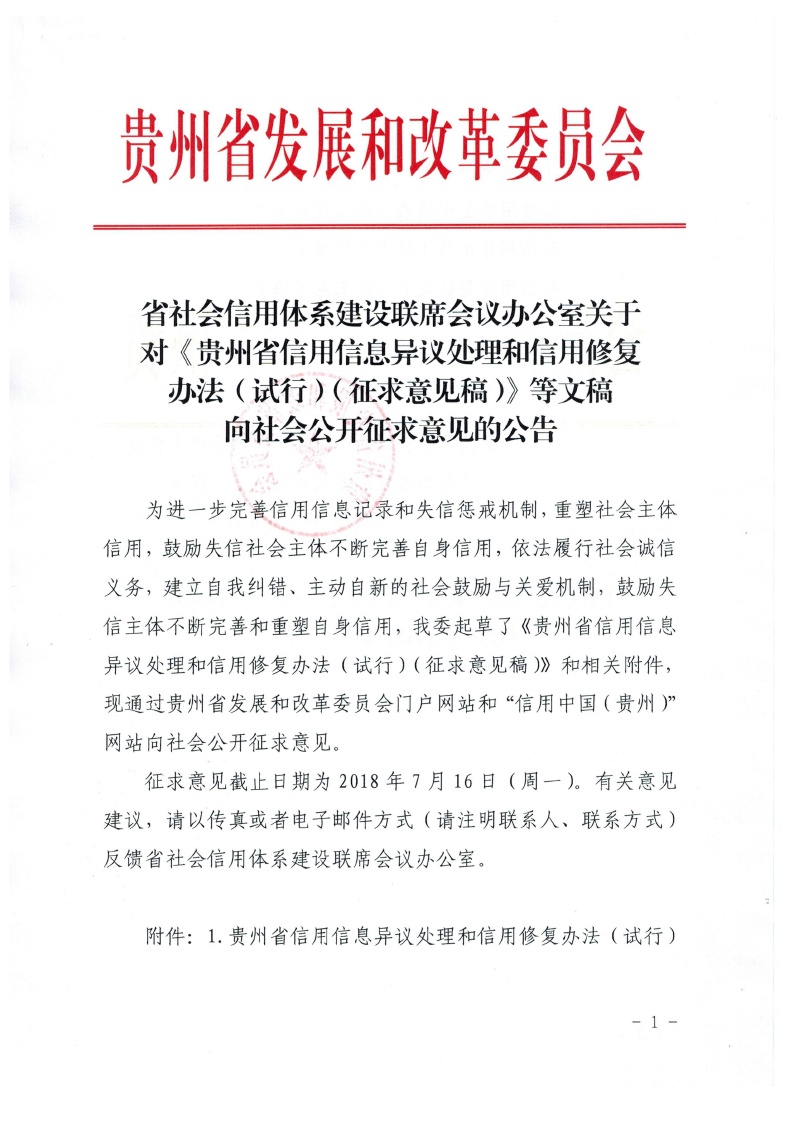 关于对《贵州省信用信息异议处理和信用修复办法(试行)(征求意见稿)》等文稿向社会公开征求意见的公告
