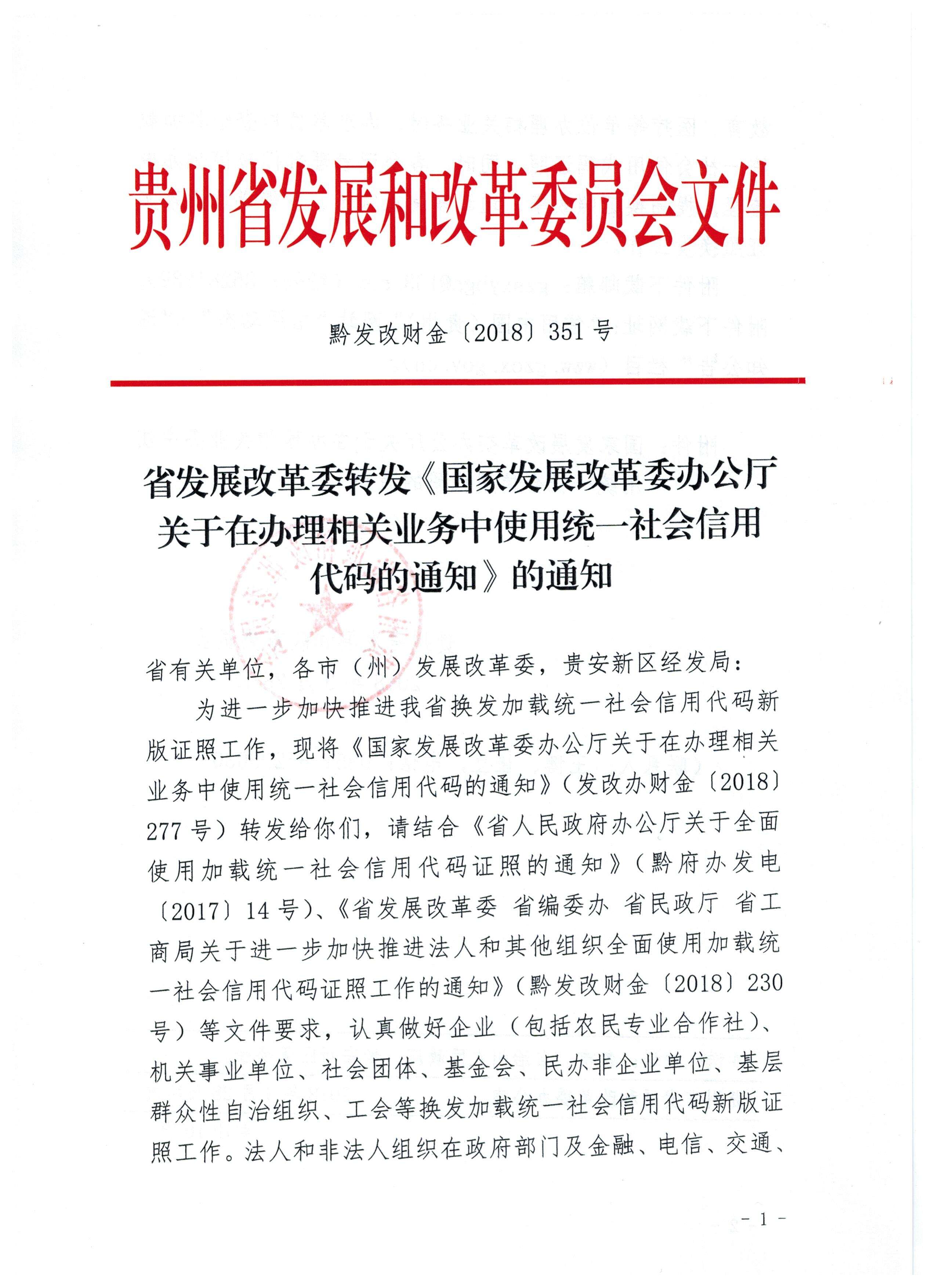 省发展改革委转发《国家发展和改革委办公厅关于在办理相关业务中使用统一社会信用代码的通知》的通知